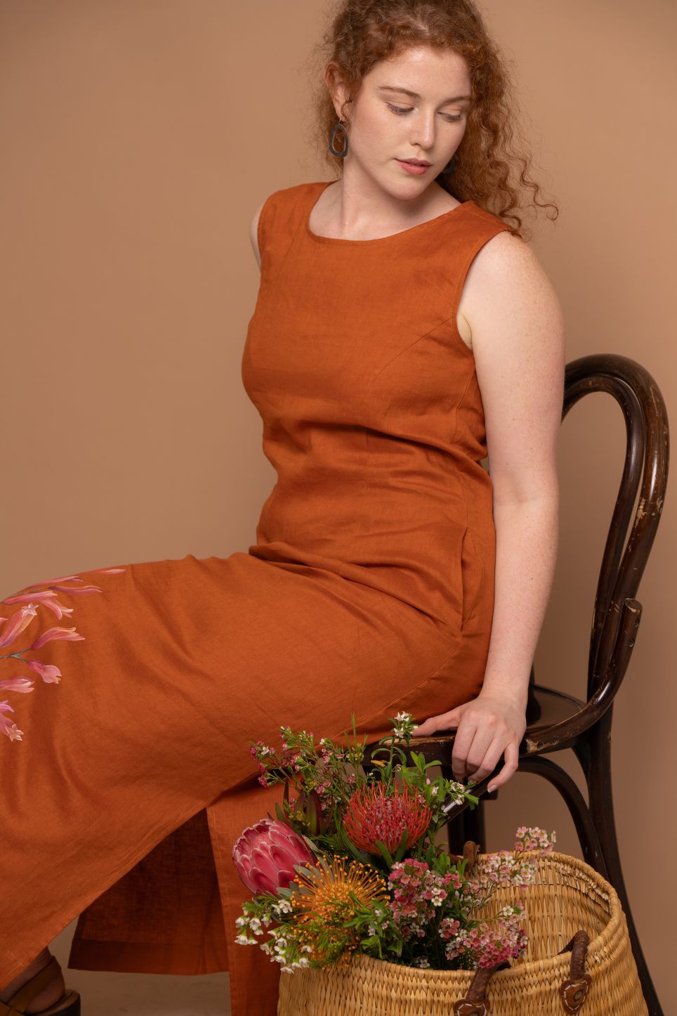 Kangaroo Paws Rust Orange Hand-Painted Maxi Dress
