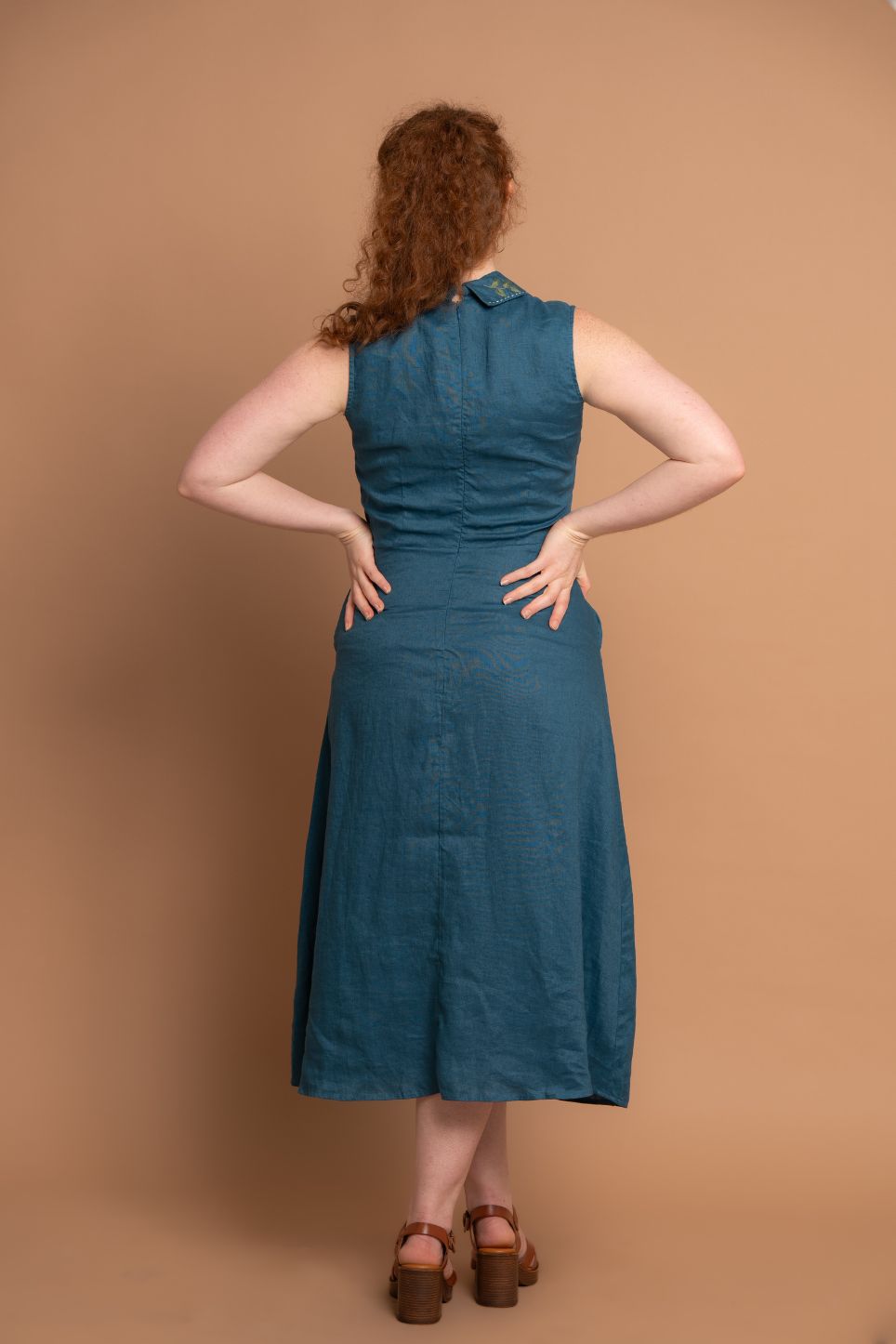 Aurora Teal Maxi Shirt Dress / Hand Embroidered