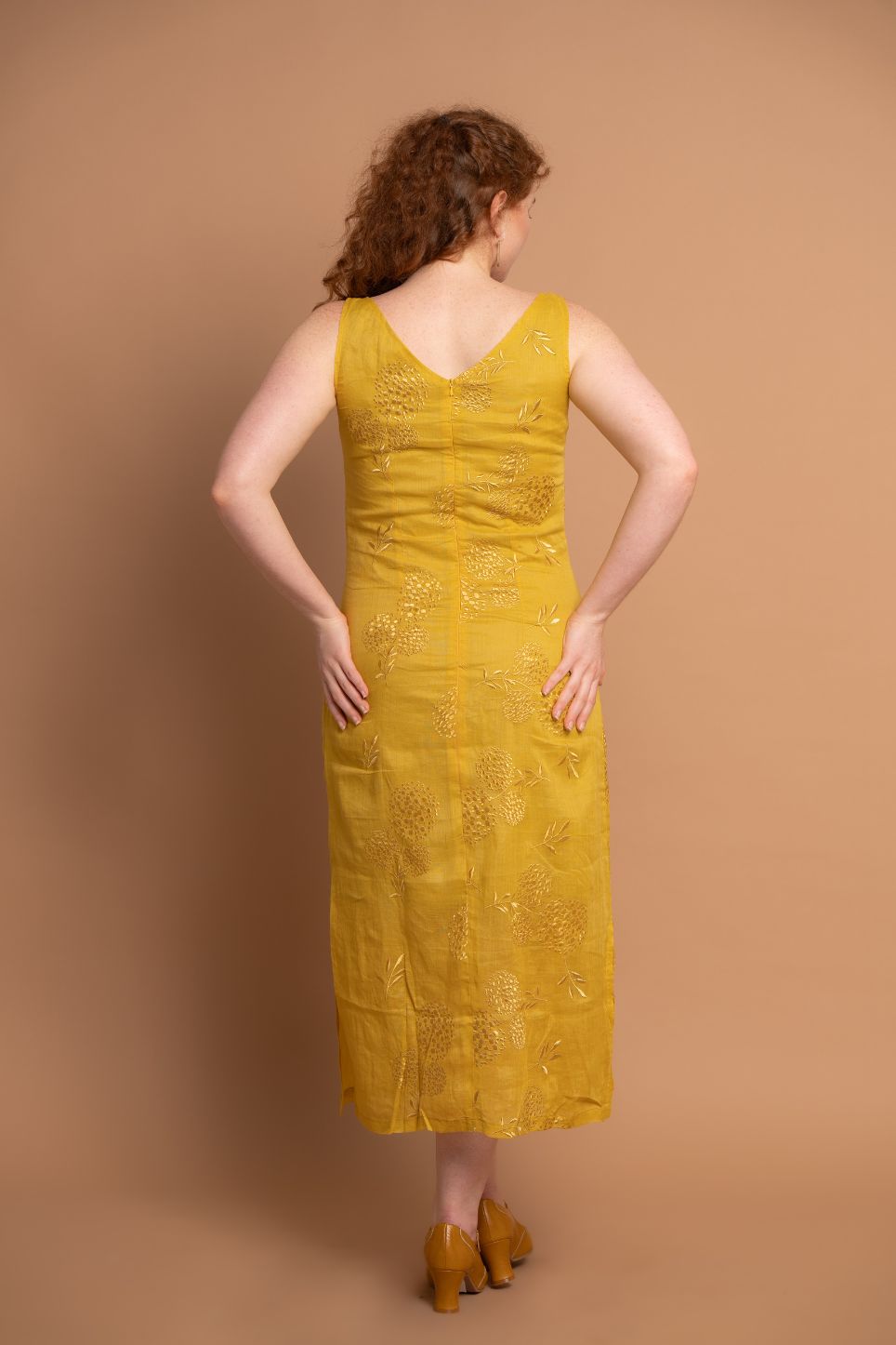 Marigold Embroidery Floral Midi Dress