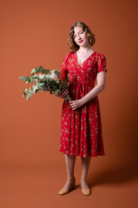 Fiorella Corset Red & Cream Cherry Blossom Dress