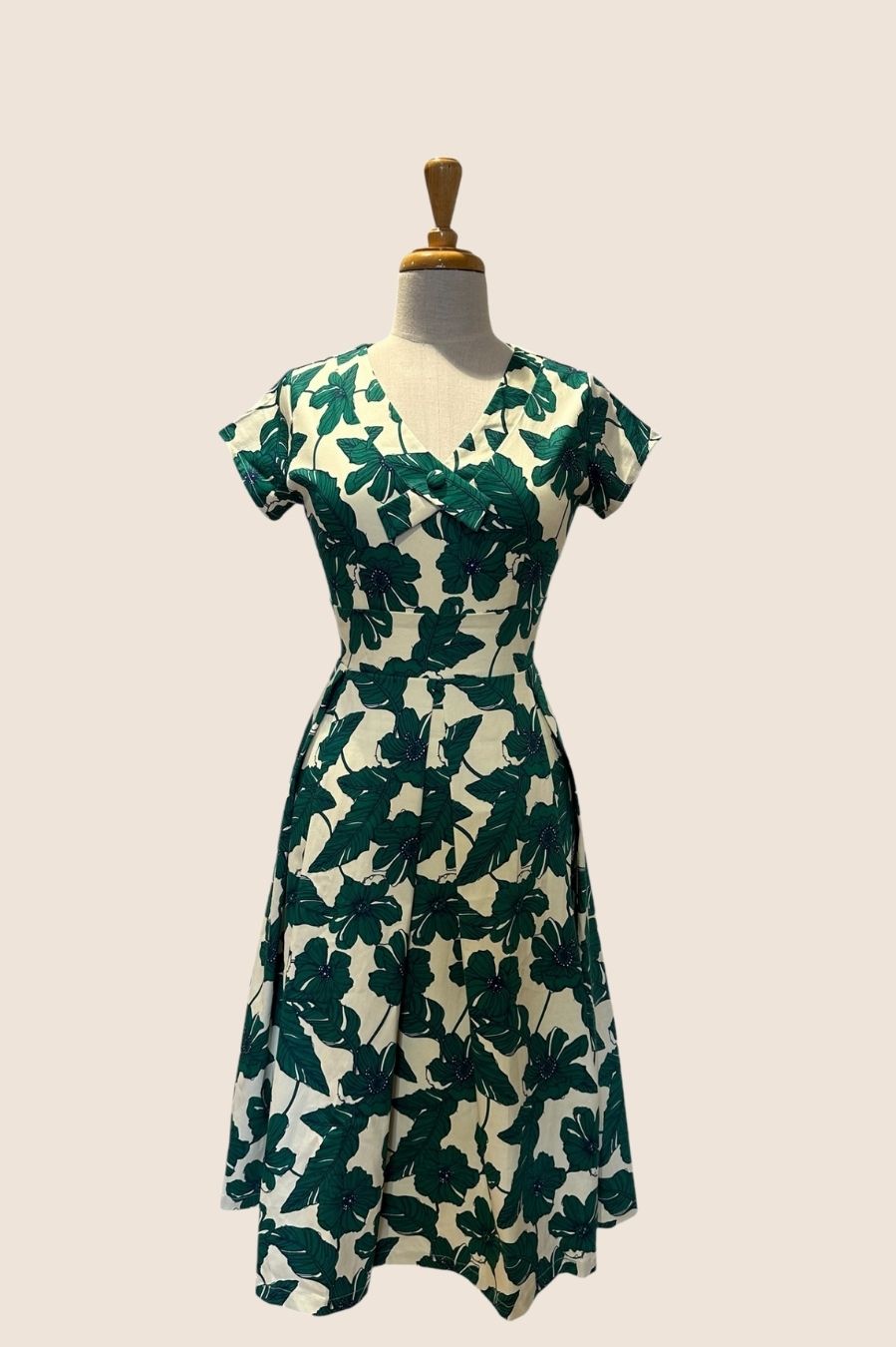 Round neckline with cross collar detail and button